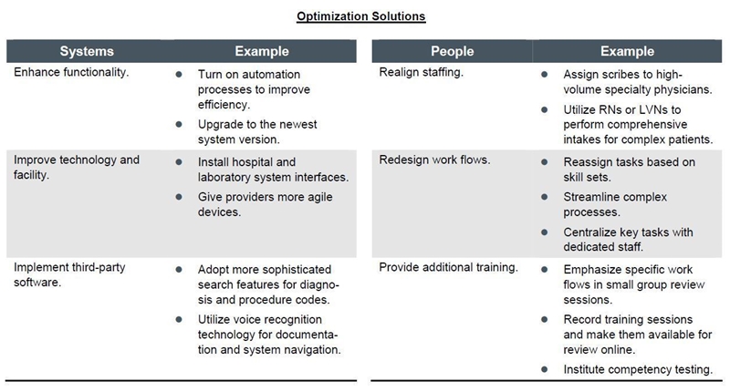 The good news, however, is that these and other shortcomings can be identified and addressed through an optimization exercise, giving you a structured means of realizing your EHR system’s full potential and, possibly, avoiding replacement. A further benefit of optimization is that the process can be completed in less than a year, with noticeable improvements in as little as 3 to 6 months.